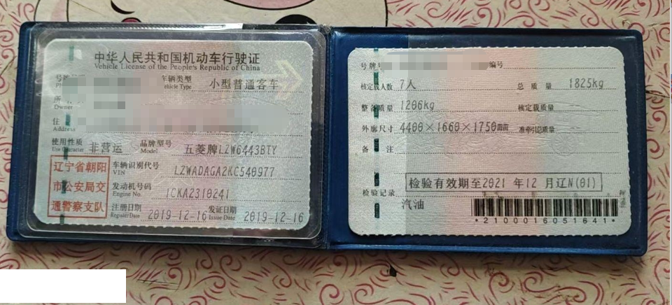 车牌号 辽****** 品牌 五菱