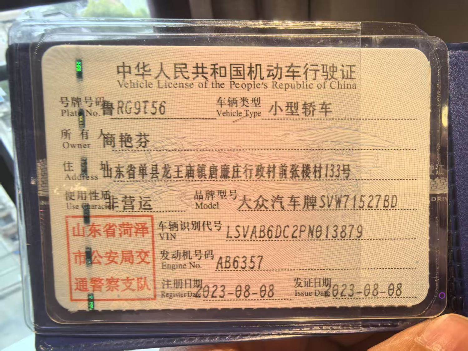车牌号 鲁****** 品牌 大众