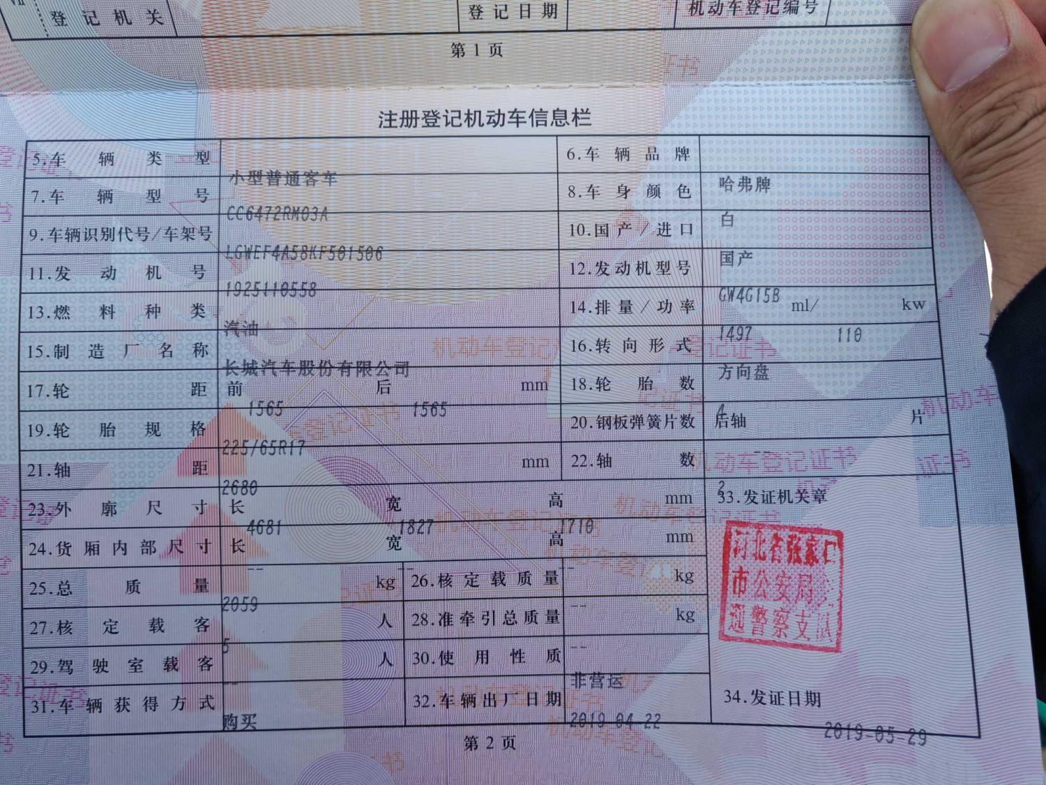 初次登记日期 2019-05-29 车辆名称 哈弗H6