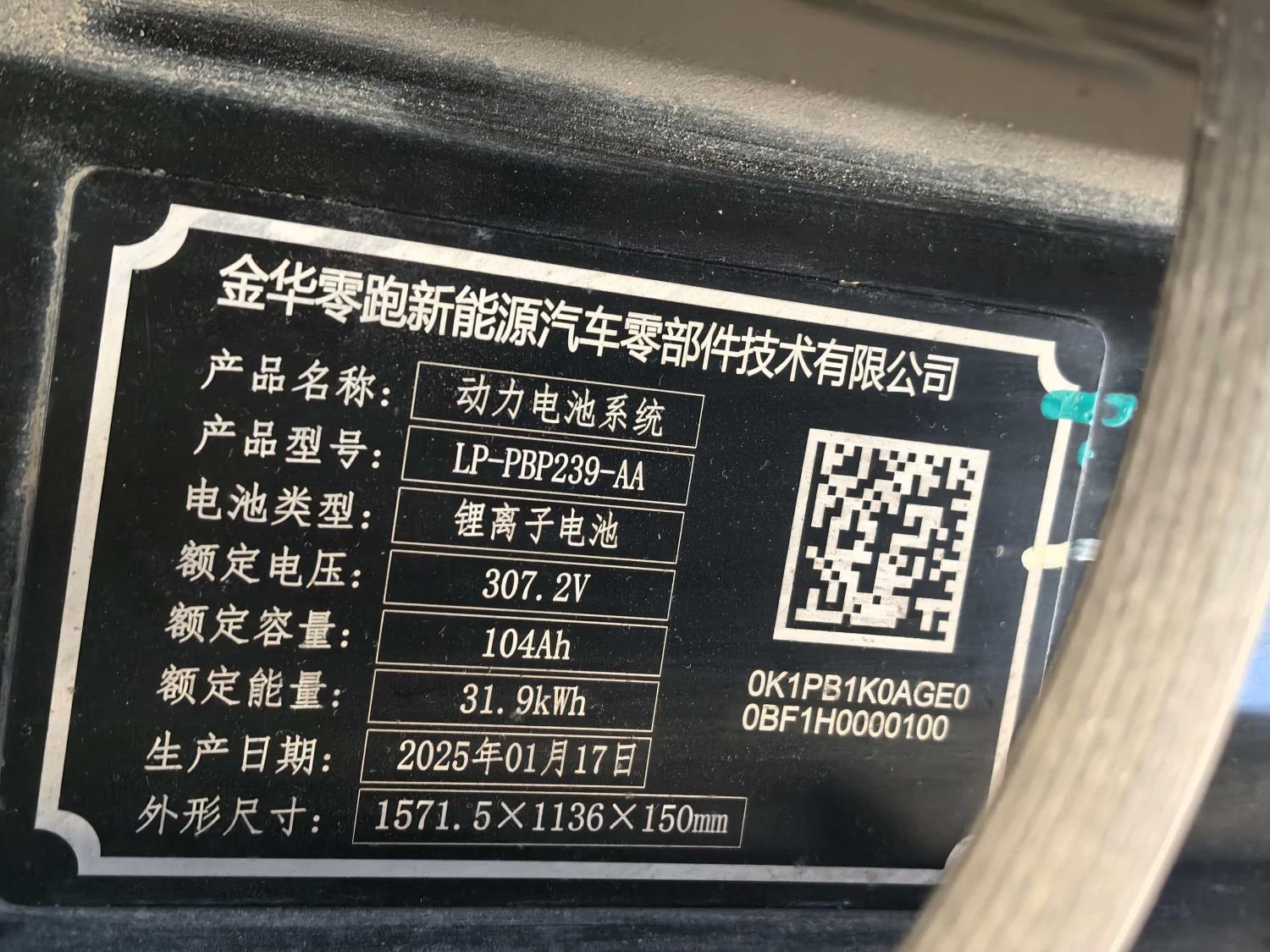 初次登记日期 2025-02-19 车辆名称 零跑汽车 零跑