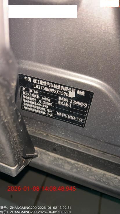 初次登记日期 2025-12-10 车辆名称 吉利银河 星愿