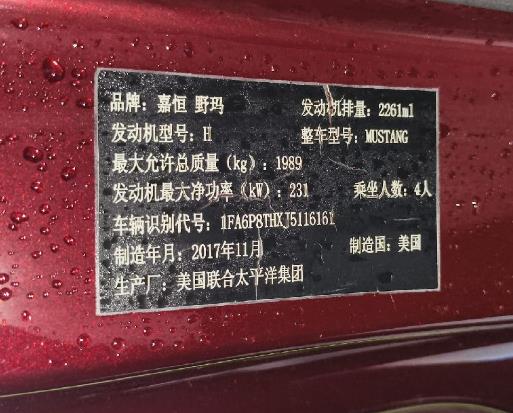 初次登记日期 2019-02-02 车辆名称 福特 Mustang