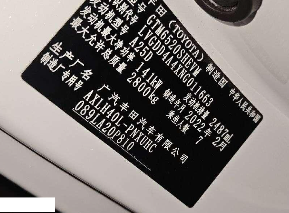 初次登记日期 2022-05-30 车辆名称 丰田 赛那