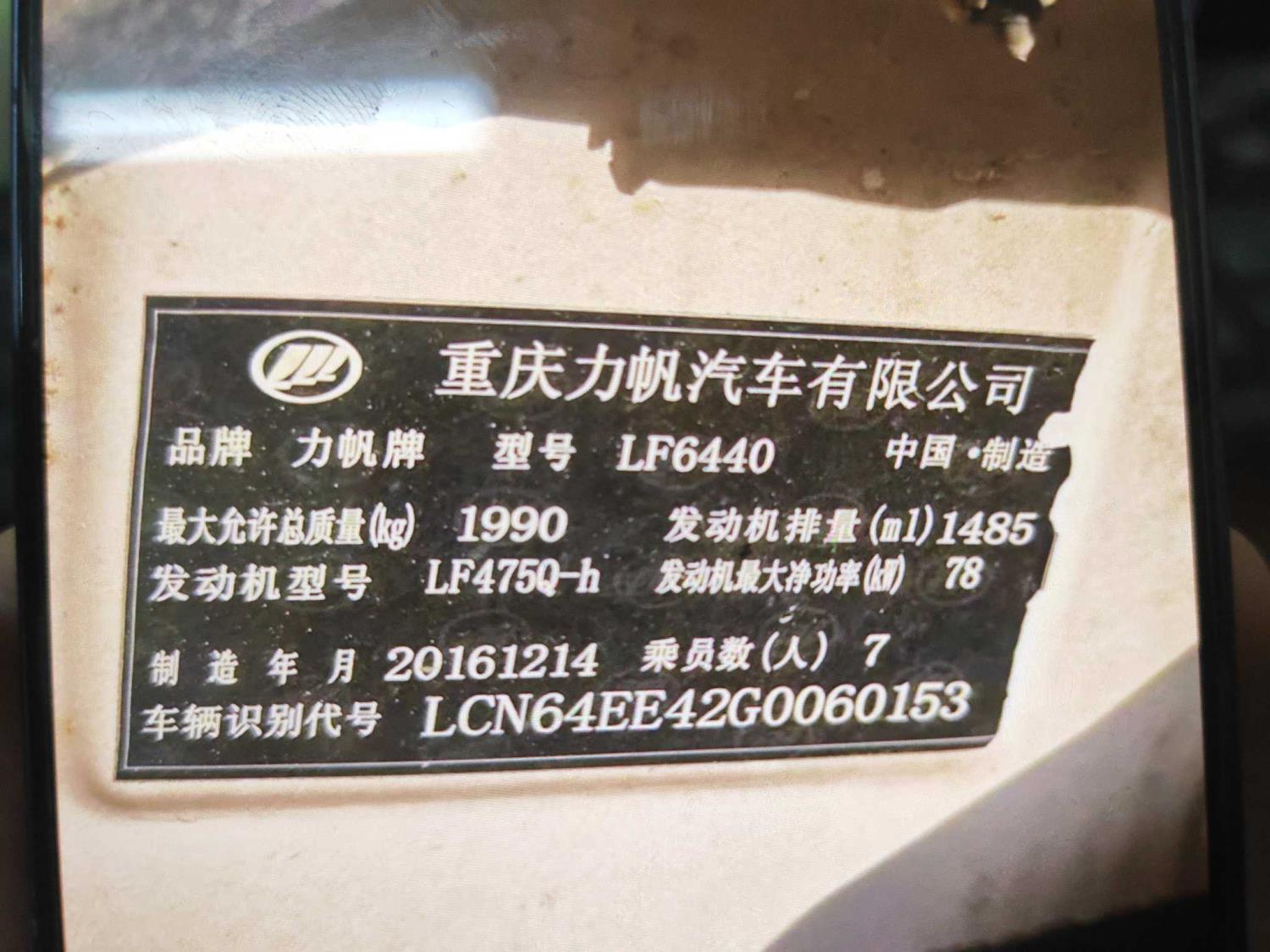 初次登记日期 2017-02-14 车辆名称 力帆汽车 迈威