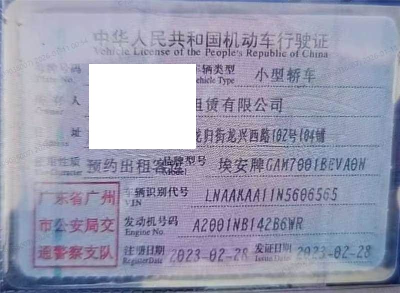 车牌号 粤****** 品牌 广汽