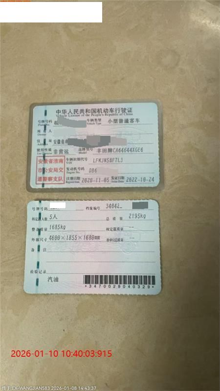 车牌号 皖****** 品牌 丰田