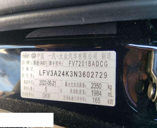 初次登记日期 2022-08-25 车辆名称 奥迪A6L