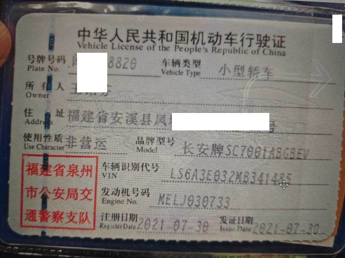 初次登记日期 2021-07-30 车辆名称 长安奔奔
