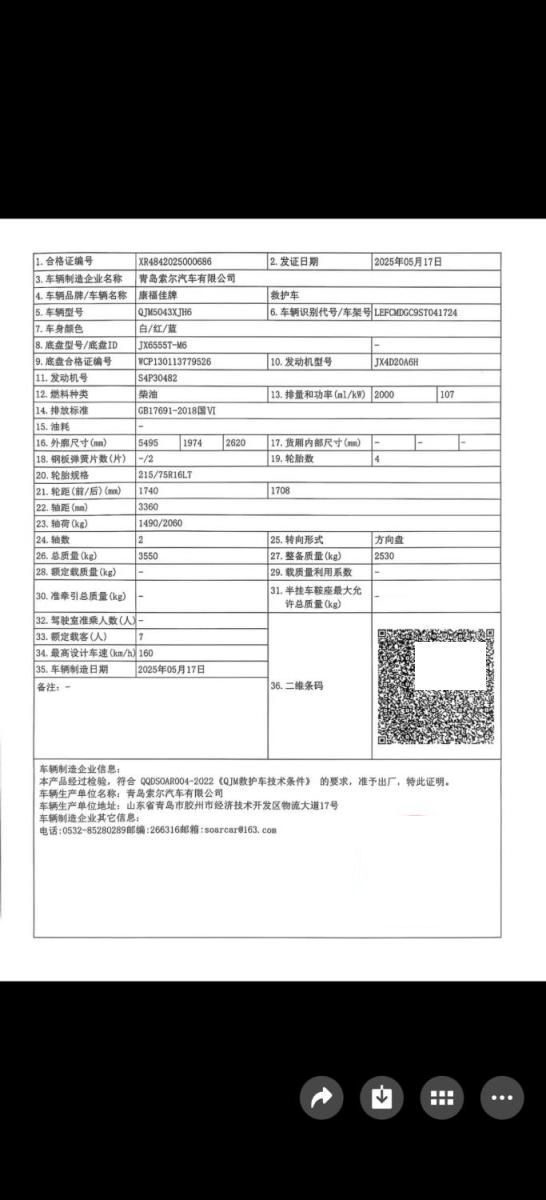 初次登记日期 2025-12-01 车辆名称 江铃福顺
