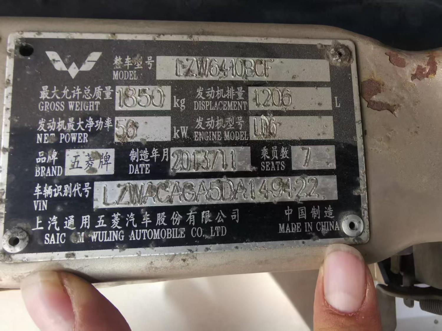 初次登记日期 2014-01-06 车辆名称 五菱汽车 五菱荣光