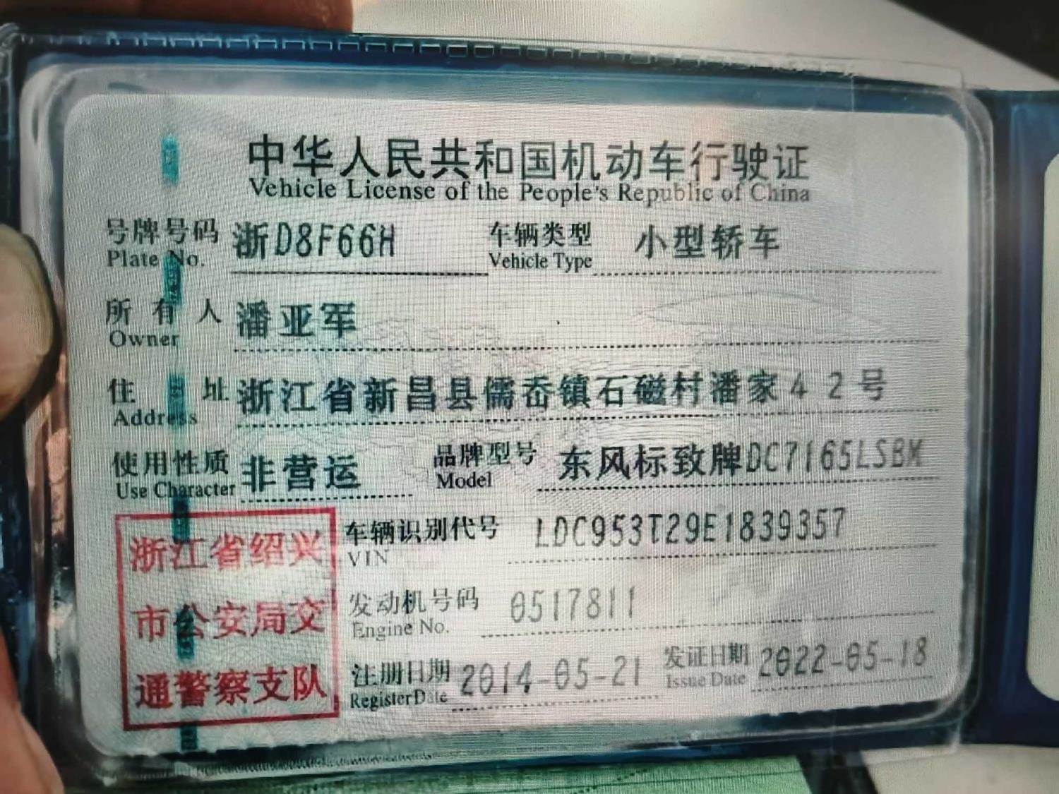 车辆归属地 浙江省绍兴市 车辆停放仓库 浙江省绍兴市绍兴市