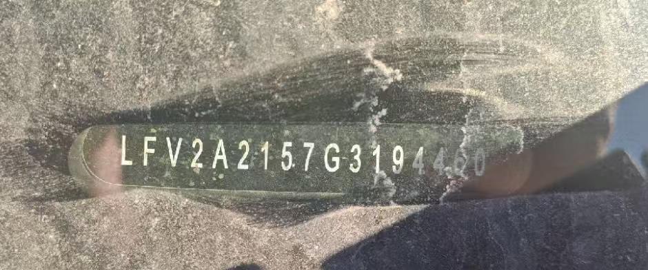 底盘号码 LFV2A2157G3194460 变速箱类型 自动
