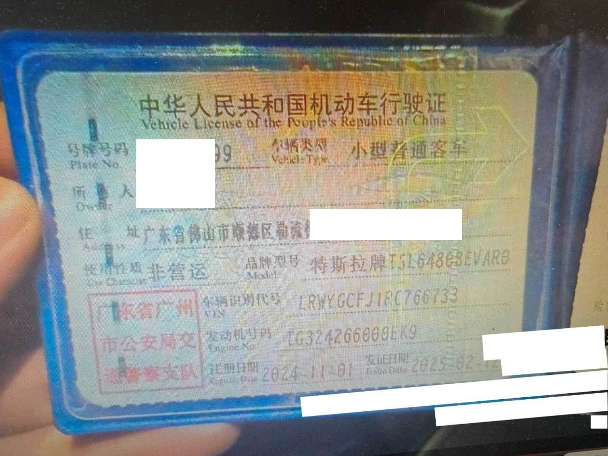 初次登记日期 2024-11-01 车辆名称 特斯拉 Model