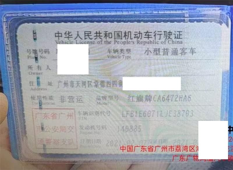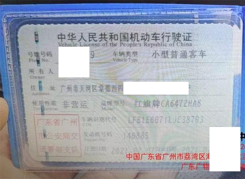 车牌号 粤****** 品牌 红旗