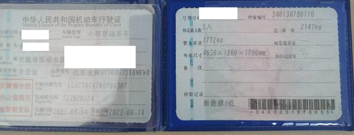 车牌号 皖****** 品牌 比亚迪