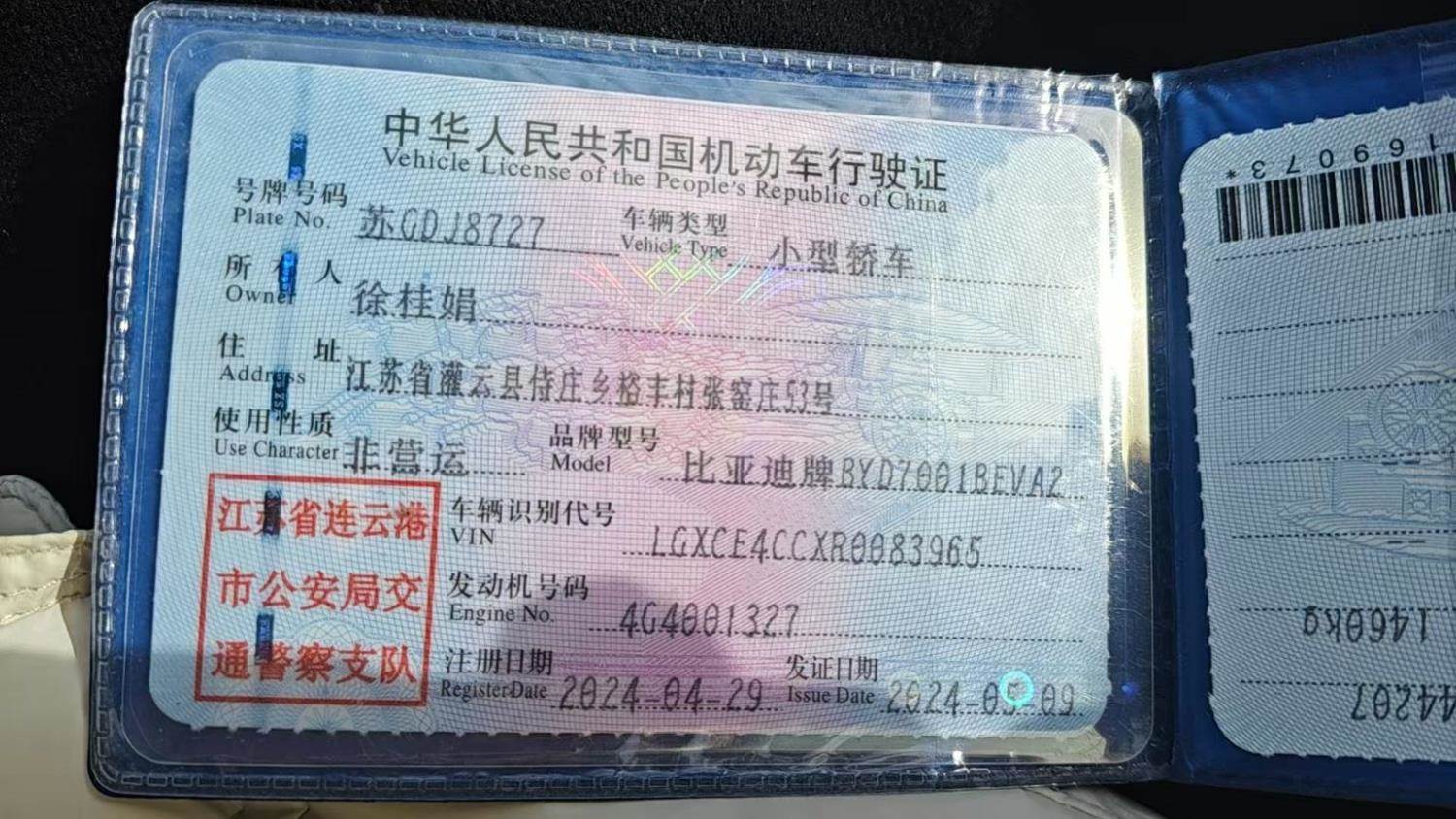 车牌号 苏****** 品牌 比亚迪