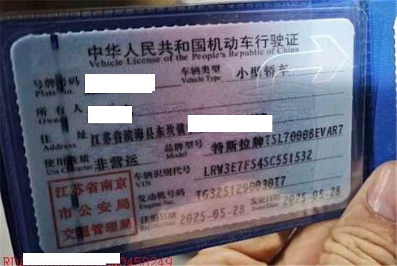 初次登记日期 2025-05-28 车辆名称 特斯拉 Model