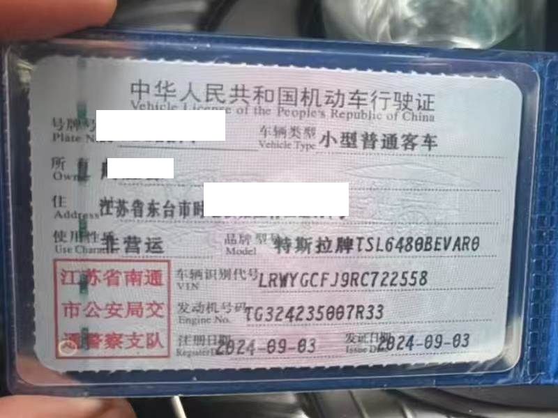初次登记日期 2024-09-03 车辆名称 特斯拉 Model