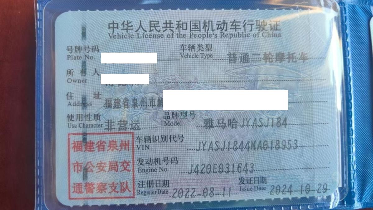 初次登记日期 2022-08-11 车辆名称 雅马哈