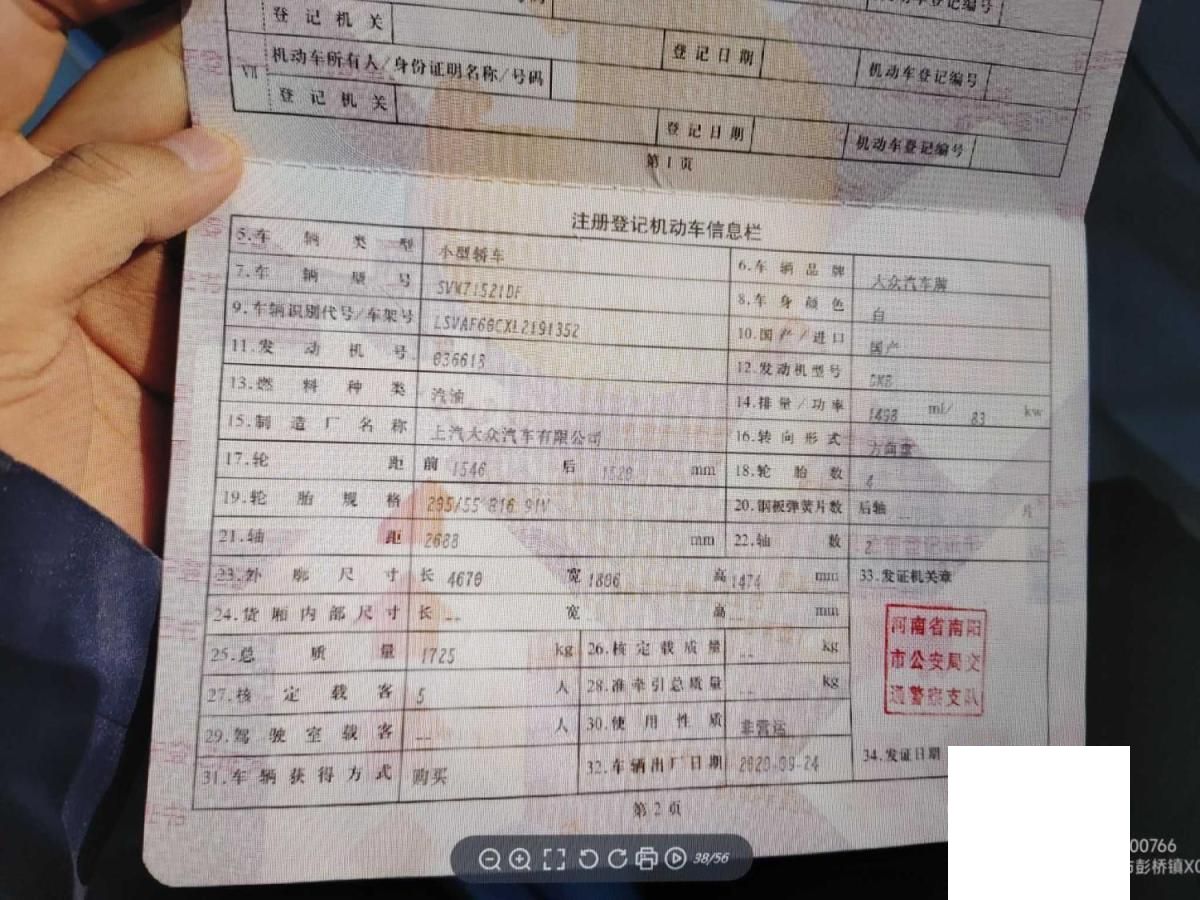 车牌号 豫****** 品牌 大众