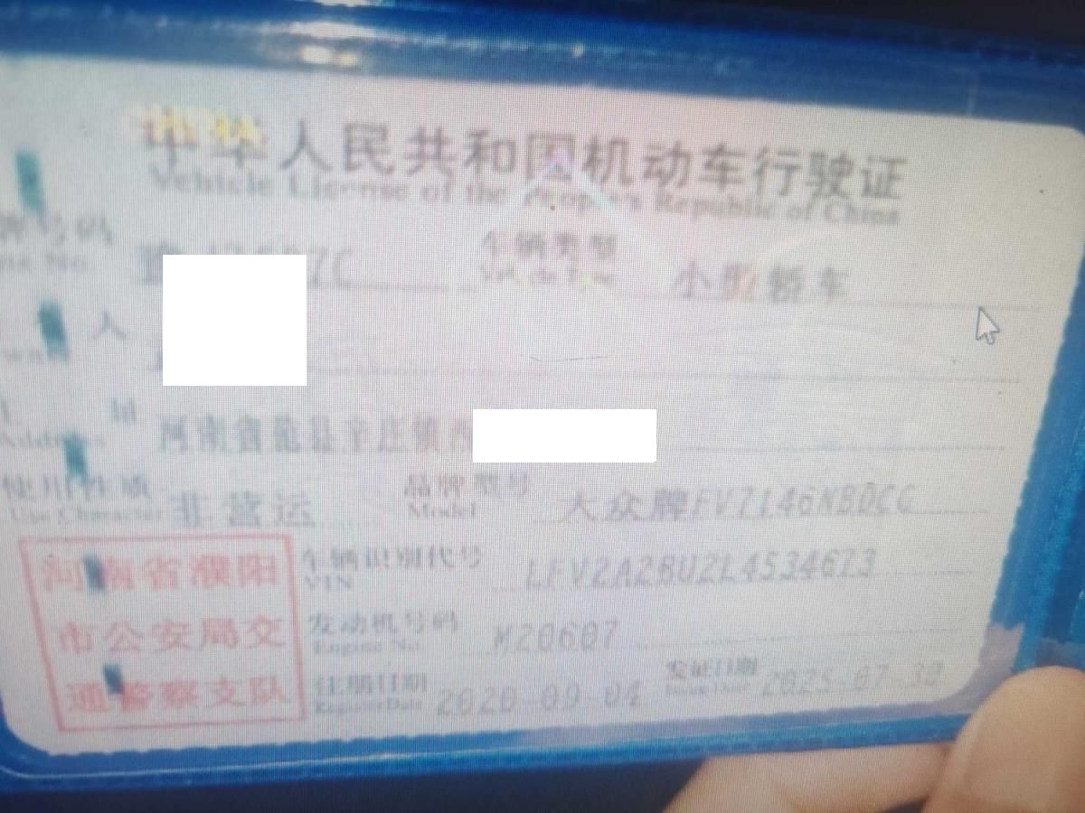 初次登记日期 2020-09-04 车辆名称 大众 速腾