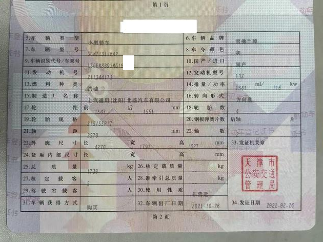 初次登记日期 2022-02-26 车辆名称 雪佛兰