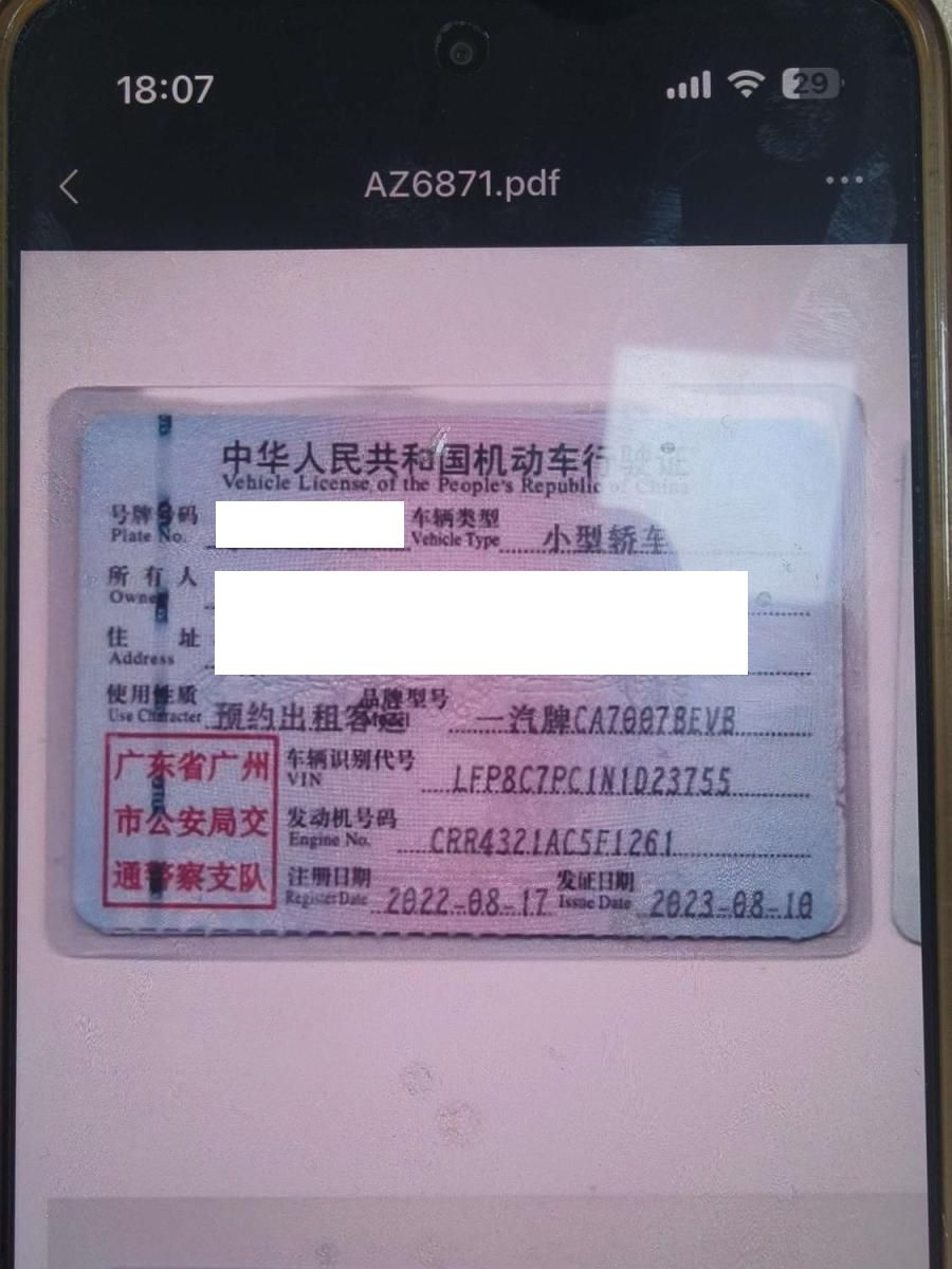 车牌号 粤****** 品牌 奔腾