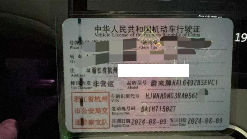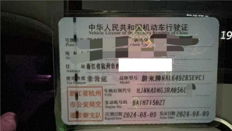 初次登记日期 2024-08-09 车辆名称 蔚来牌