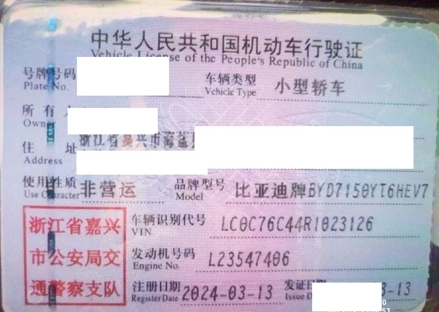 初次登记日期 2024-03-13 车辆名称 比亚迪 汉