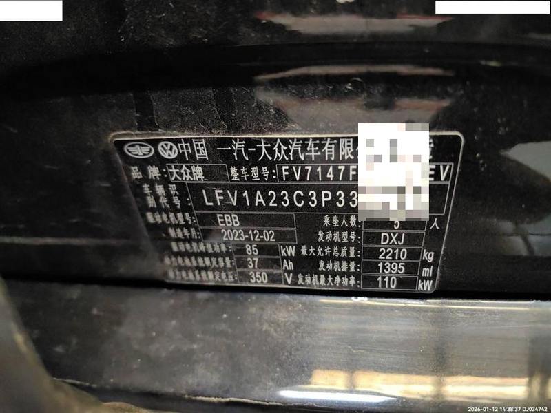 初次登记日期 2025-01-06 车辆名称 大众 迈腾 插电混动