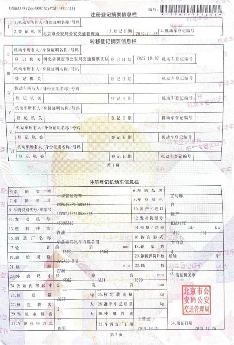 车牌号 冀****** 品牌 宝马
