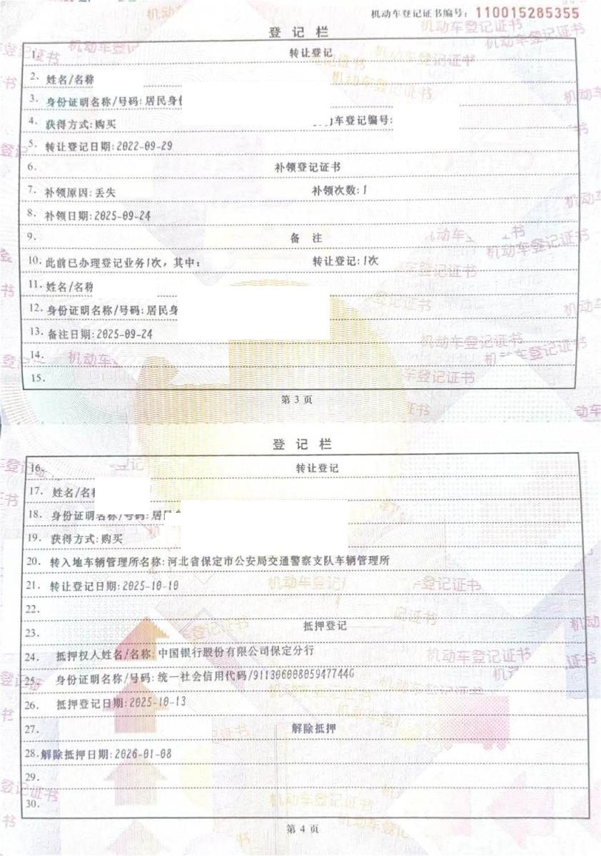 车辆归属地 河北省保定市 车辆停放仓库 河北省保定市保定市