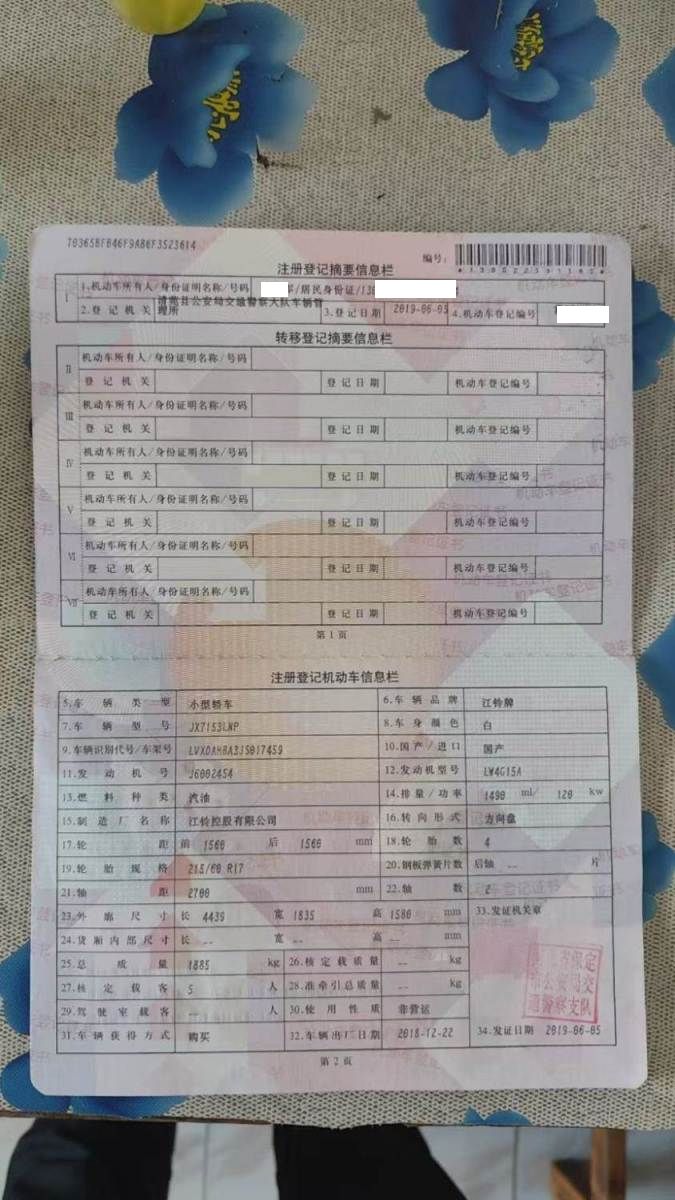 车牌号 冀****** 品牌 江铃