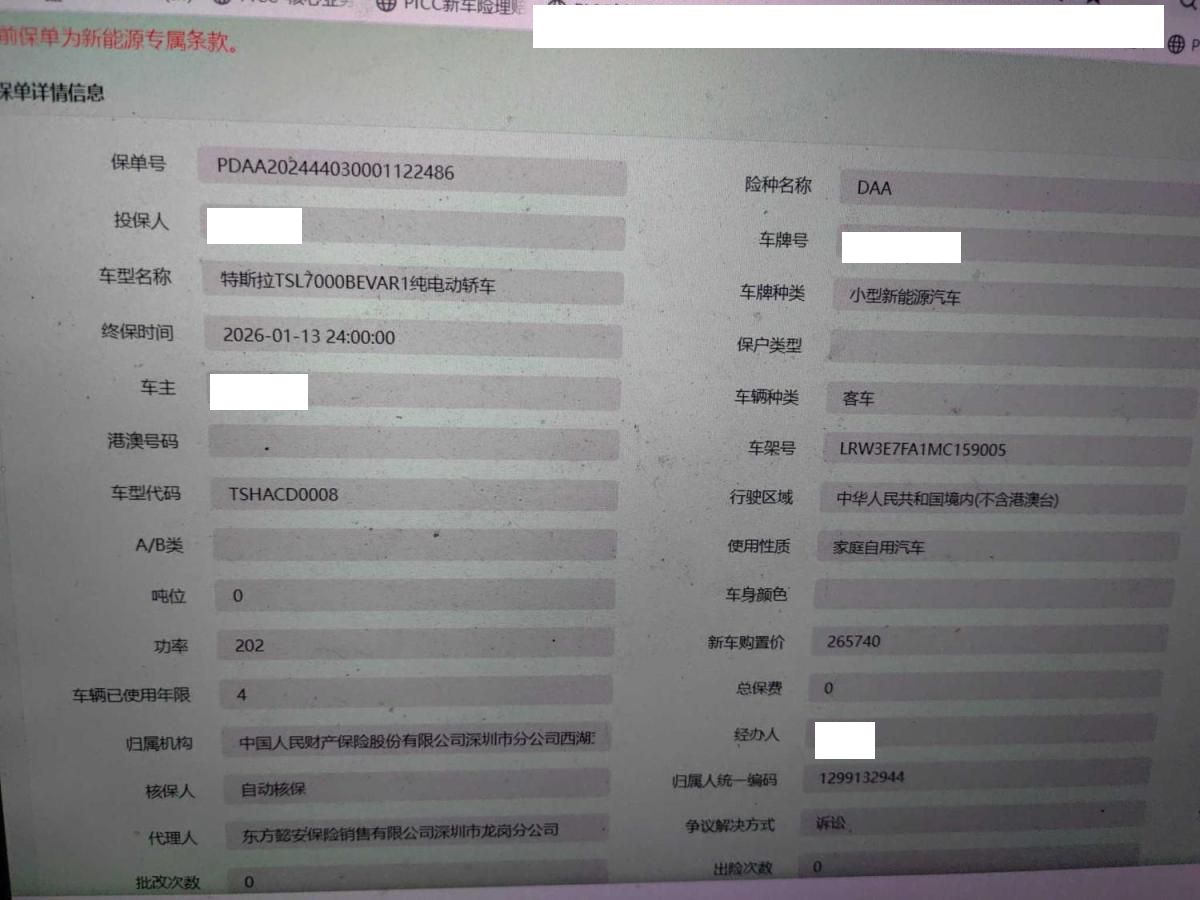 车牌号 粤****** 品牌 特斯拉