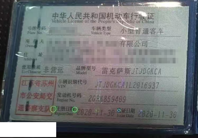 车辆归属地 江苏省苏州 车辆停放仓库 江苏省苏州