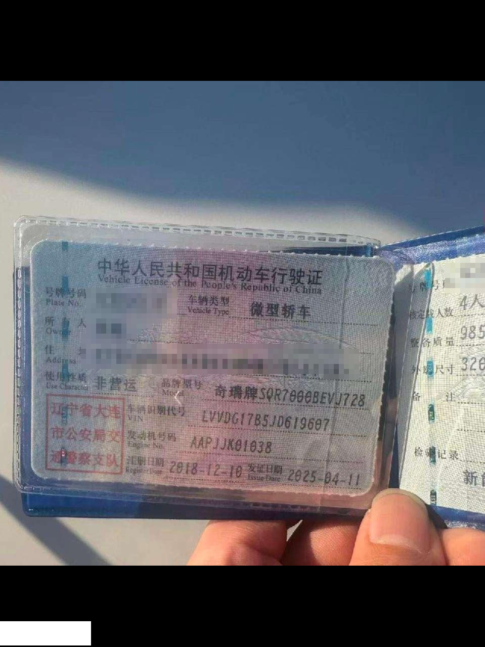 车牌号 辽****** 品牌 奇瑞