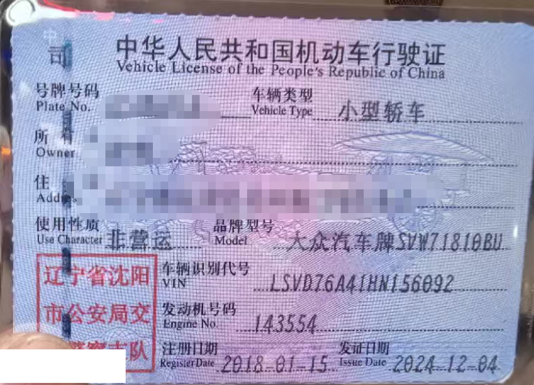 车辆归属地 辽宁省沈阳 车辆停放仓库 辽宁省沈阳