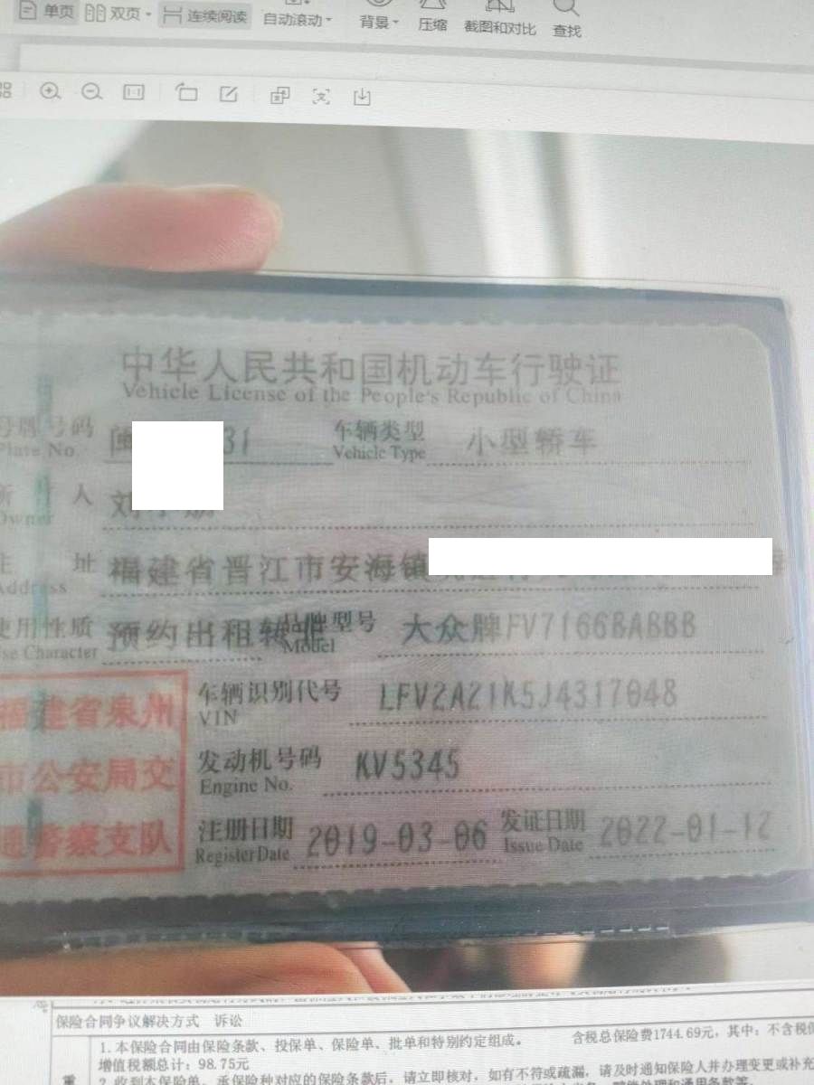车牌号 闽****** 品牌 大众