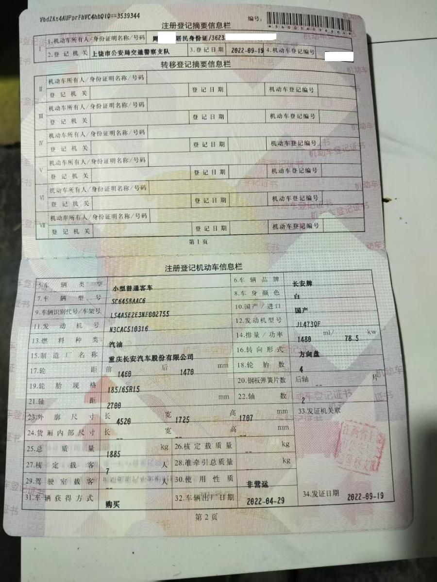 初次登记日期 2022-09-19 车辆名称 长安凯程 长行