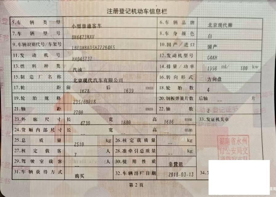 初次登记日期 2018-03-29 车辆名称 现代 胜达