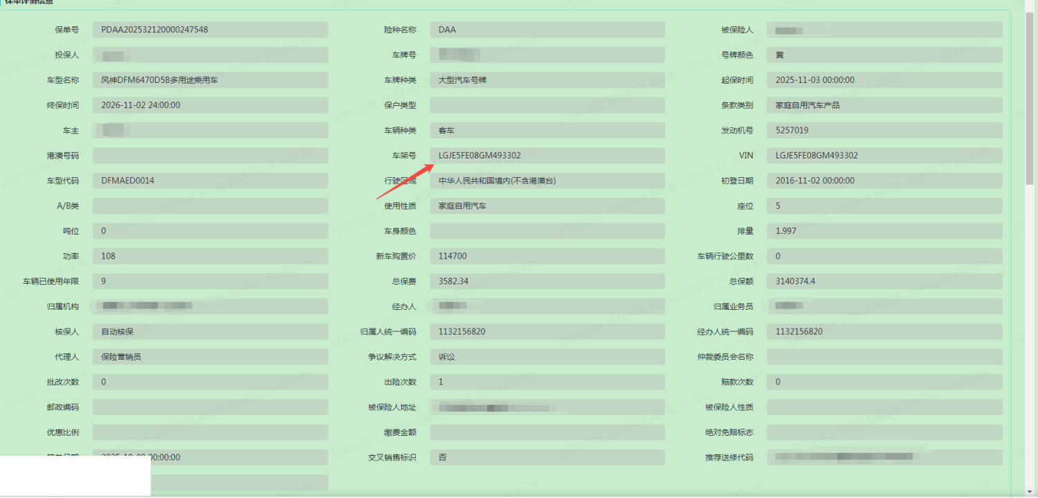 车架号是否受损 未知 使用性质 非营运