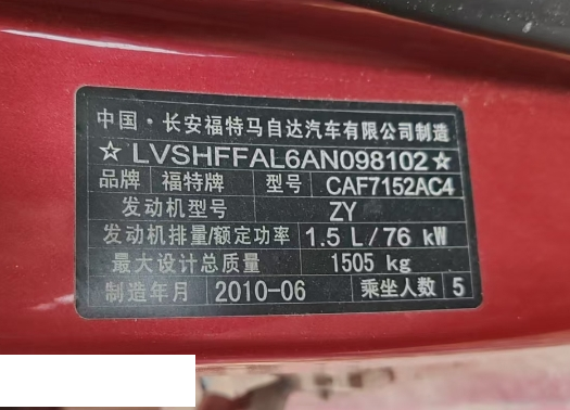 初次登记日期 2010-08-02 车辆名称 福特 嘉年华