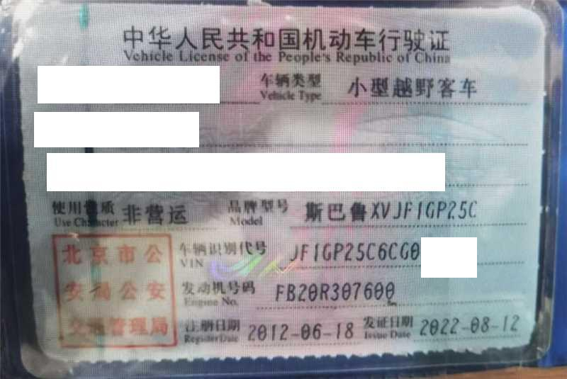 车牌号 京****** 品牌 斯巴鲁