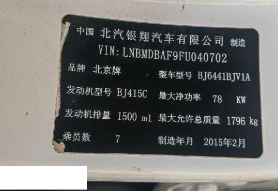 初次登记日期 2015-04-03 车辆名称 北汽幻速S3