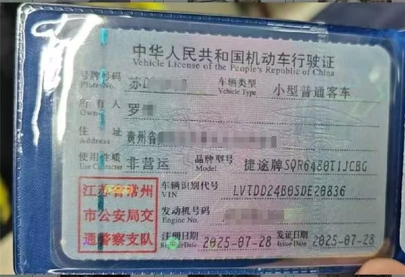 初次登记日期 2025-07-28 车辆名称 捷途旅行者
