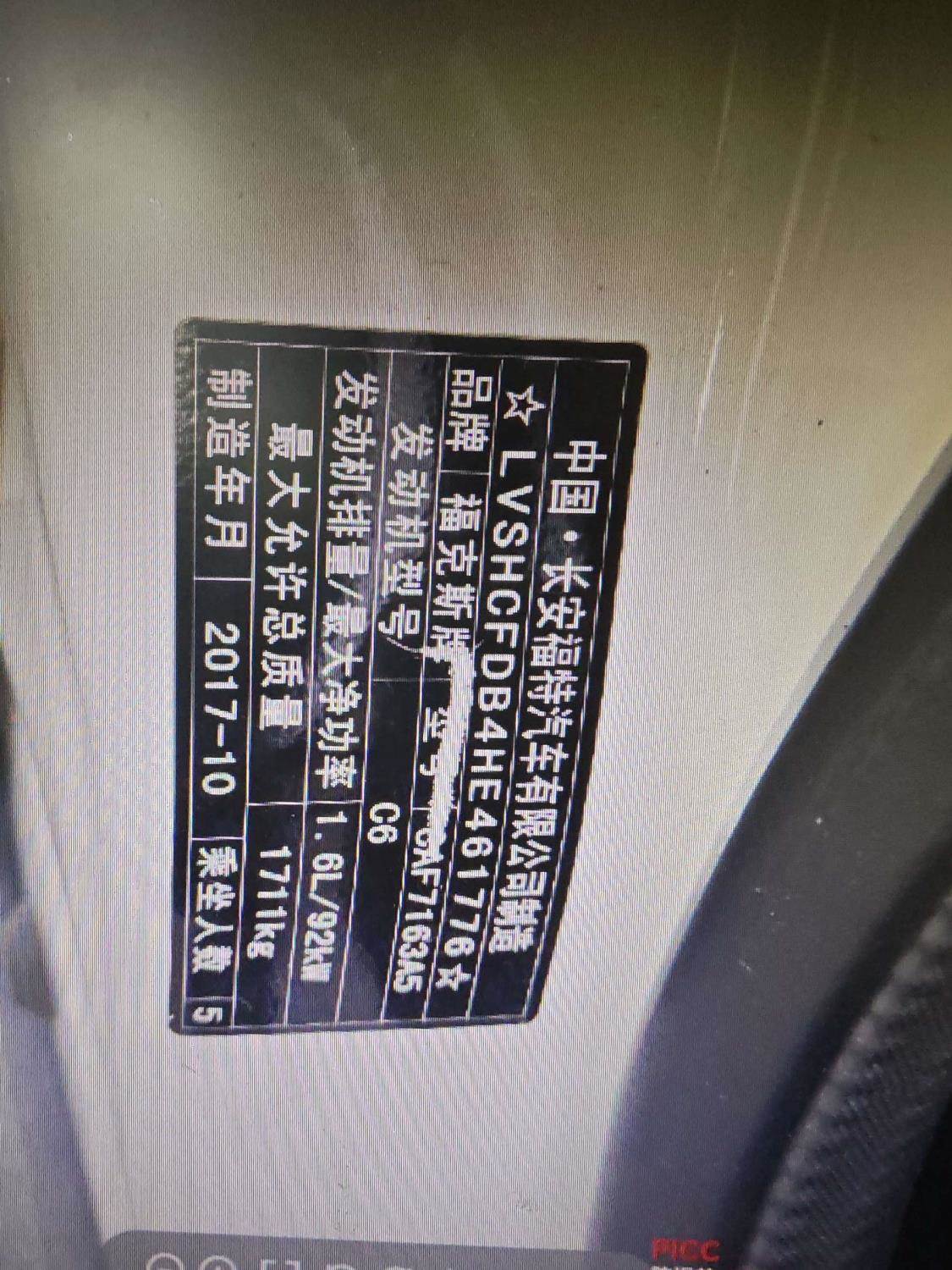 初次登记日期 2017-12-15 车辆名称 福特 福克斯