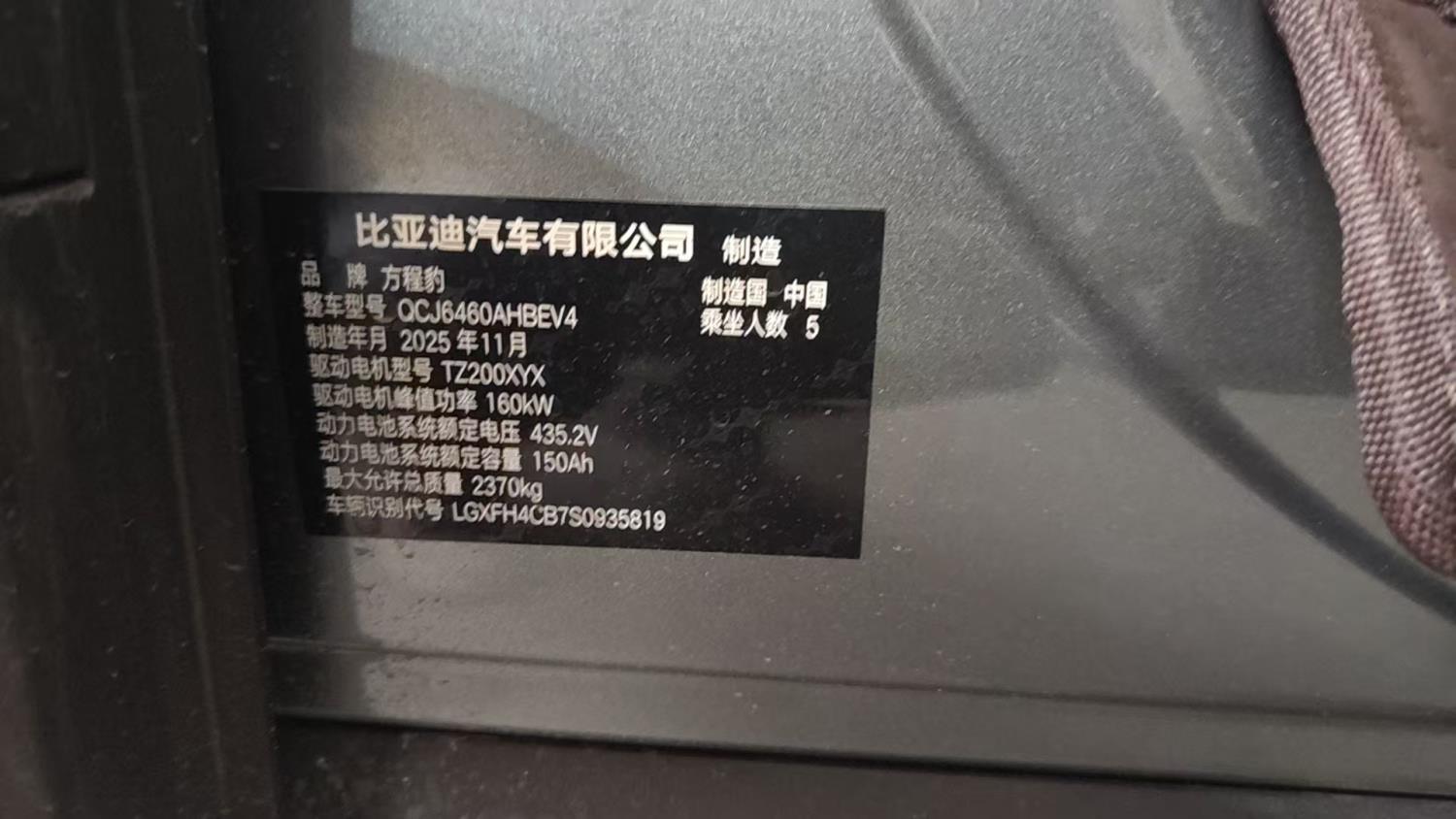 初次登记日期 2025-12-08 车辆名称 方程豹