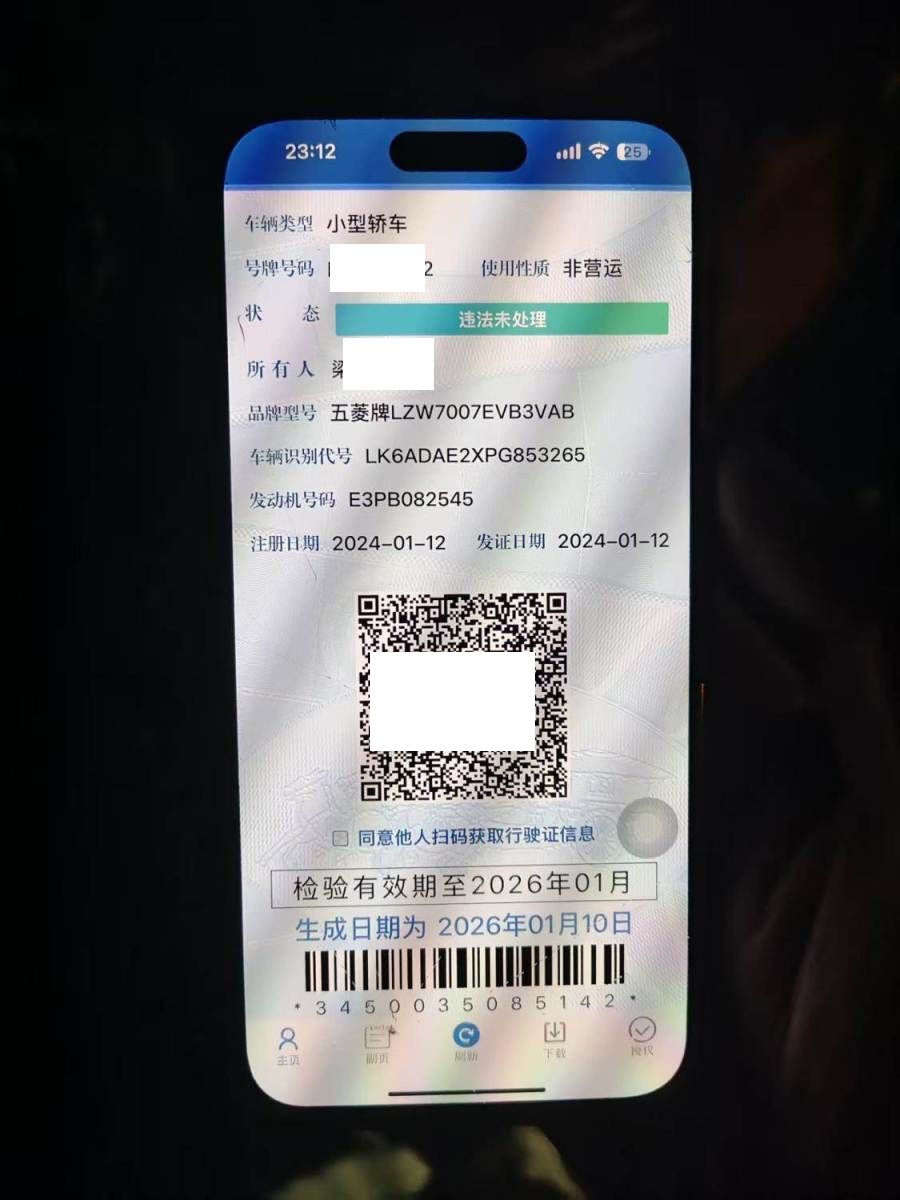 初次登记日期 2024-01-12 车辆名称 五菱汽车