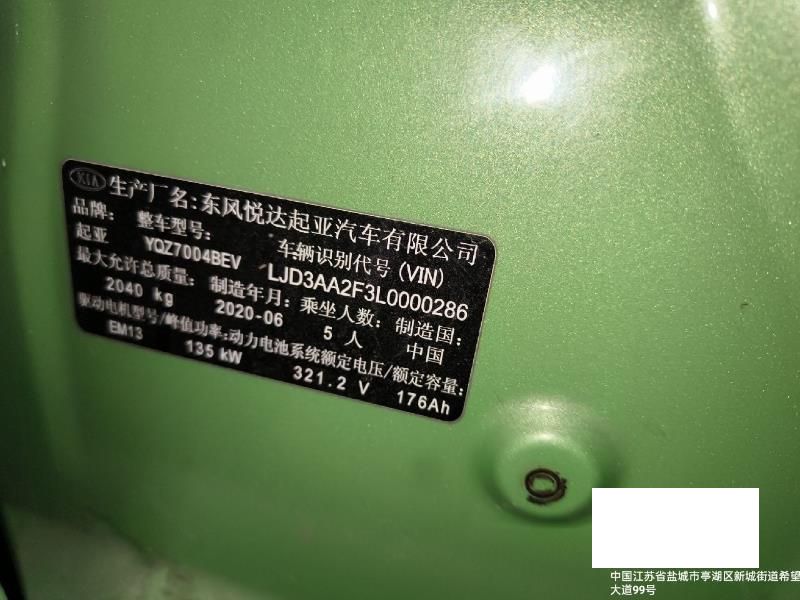 初次登记日期 2020-07-13 车辆名称 起亚牌