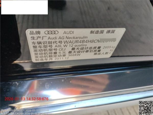 初次登记日期 2012-04-26 车辆名称 奥迪A8